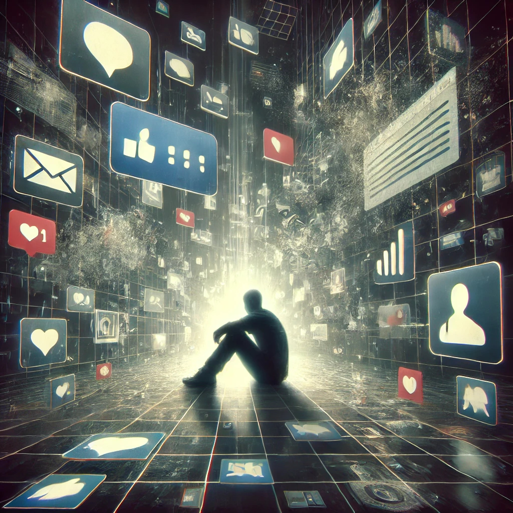 The character takes us on a brief journey into the world of Social Media. Garish, stark, naked, intrusive and at times, almost threatening and at the very least intimidating, disturbing.